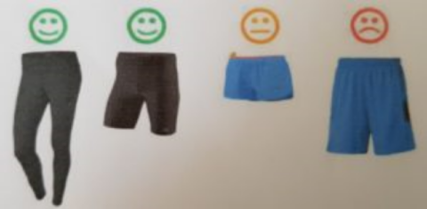 - Frauen: Bauchfreies Oberteil (Sport-BH, Lauftop). Vorteilhaft, aber nicht erforderlich. Dank Auto-Tracking kann die Analyse auch im engen Lauf-Shirt durchgeführt werden.